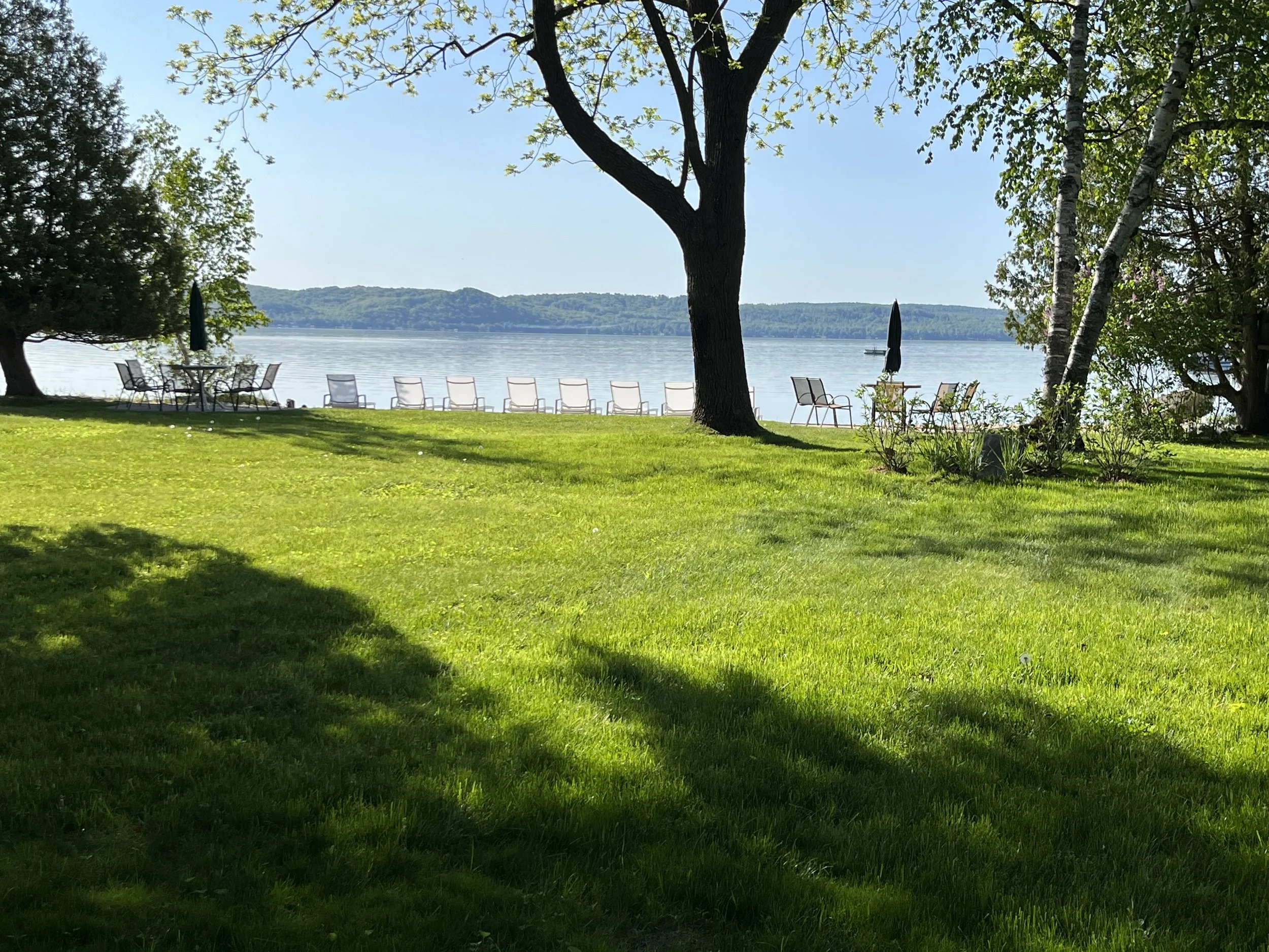 In a peaceful atmosphere with plenty of sunshine, Driftwood is ideally located with warm prevailing southwest breezes to our sandy beach and cooler north-westerns over our treetops. Surrounded with Michigan woods, right on the crystal clear waters of Big Glen Lake, yet located 1/2 mile from Glen Arbor and about 2 miles from Sleeping Bear National Park Dune climb this is the perfect spot to enjoy days at home and days out exploring the local area. Smooth, softly sloping sand leads to Glen Lake, just outside your door. Children love it, and adults can relax alongside them. Children can even wade all the way to the anchored raft. The very large beach is shared with two other villas but never crowded.