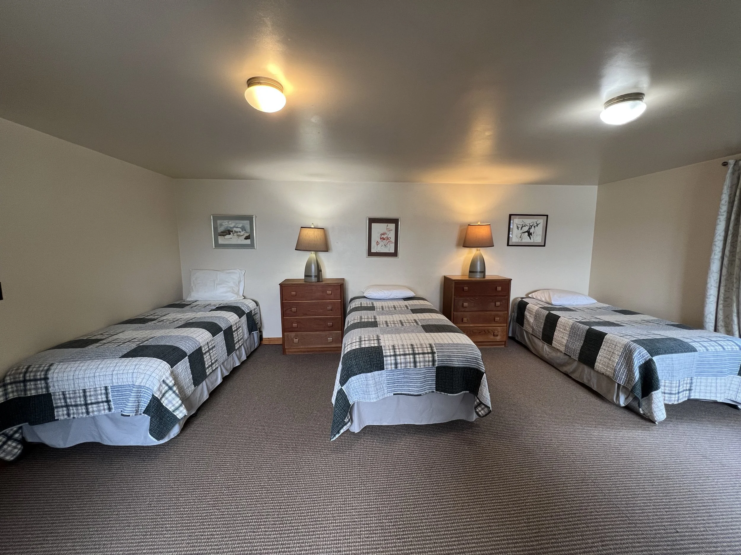 Lakeside is a two story villa which features a charming double living room with large stone fireplace and queen size pullout, a spacious, full country kitchen with dining area, peaceful main level master suite with queen size bed, sitting area and floor-to-ceiling windows with pristine lake views, main level full bath with shower, large upper level bedroom with three twin beds and third bedroom with queen size bed.