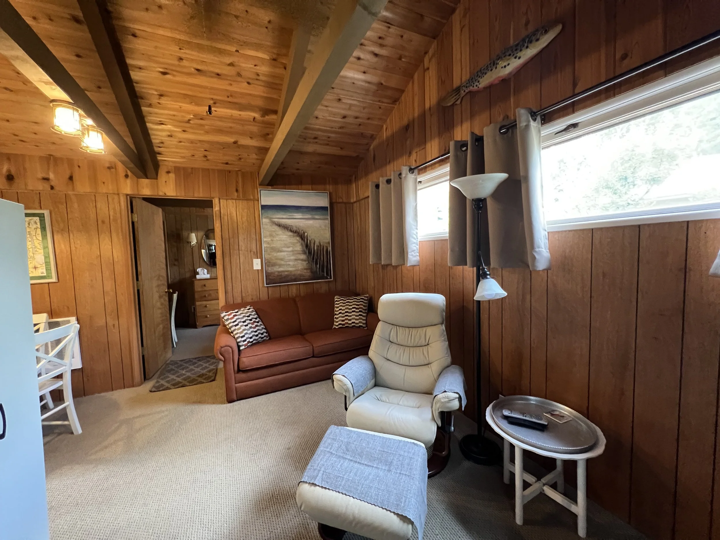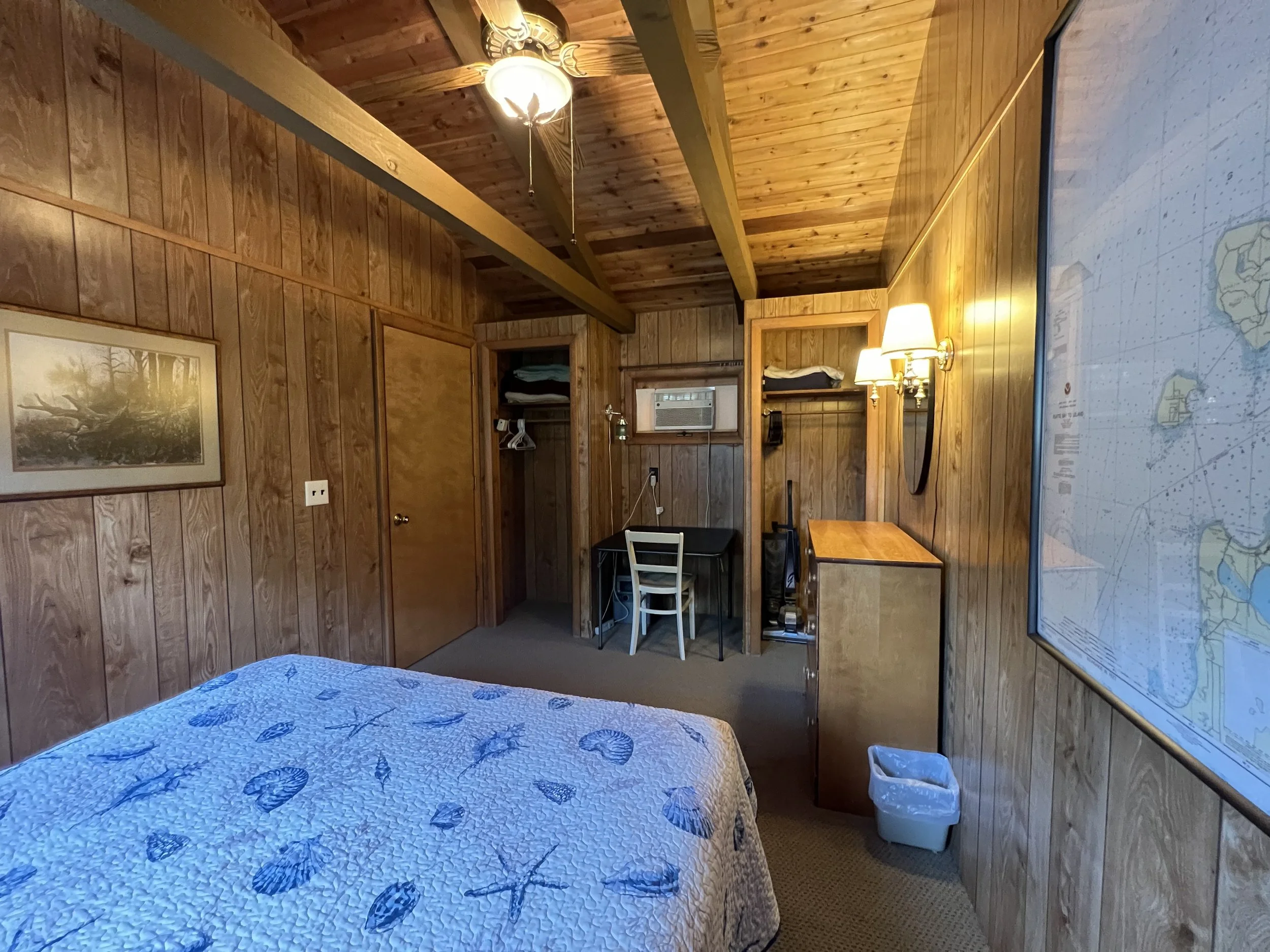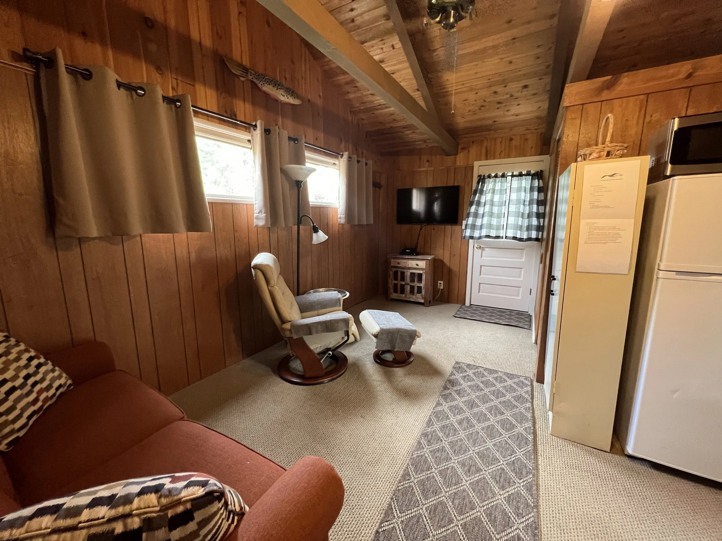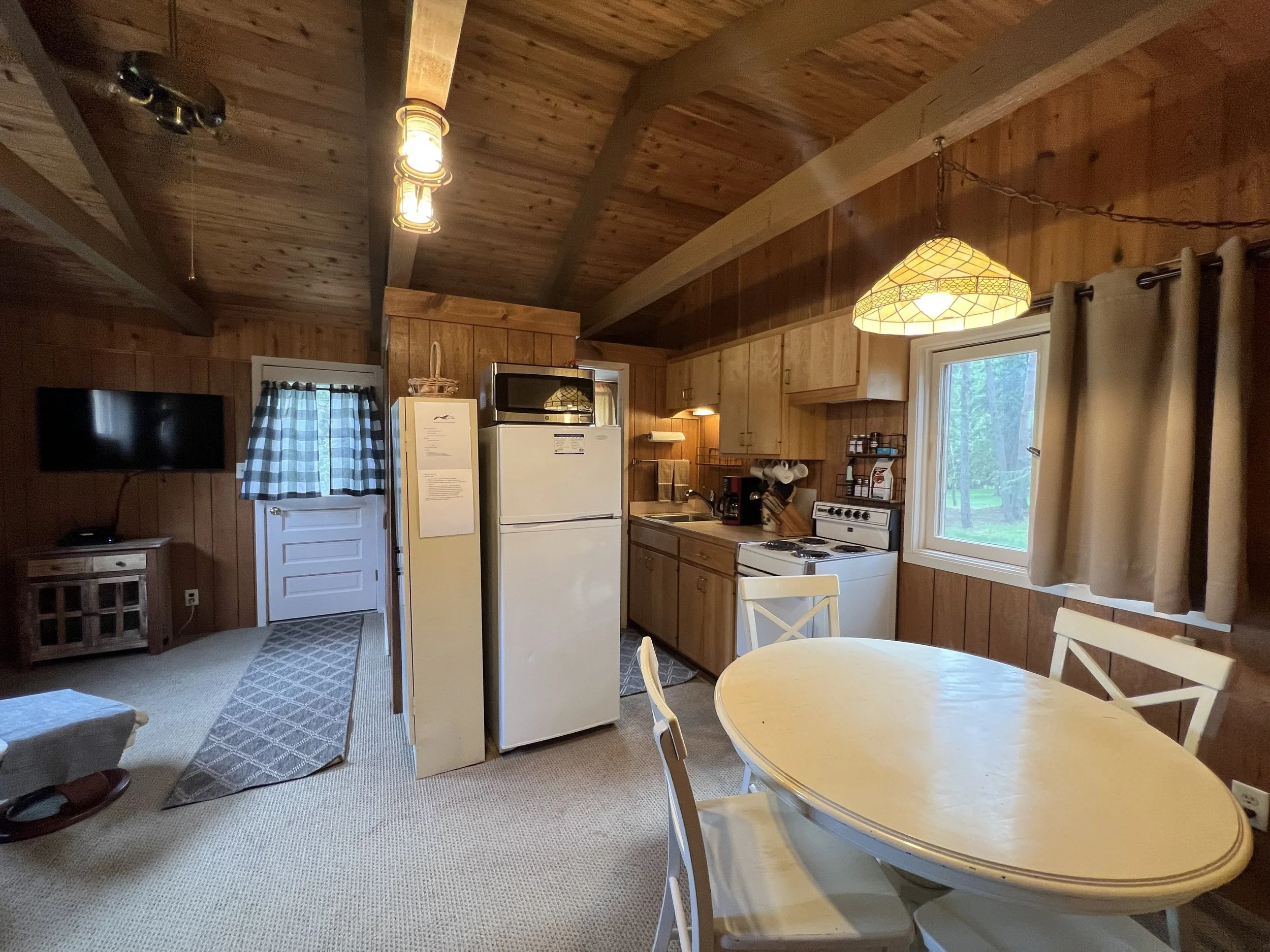 Features include living room with vaulted ceiling and fan, small bathroom and shower, new TV, full size pull out couch, electric wall heater, dining table, kitchenette with refrigerator/freezer, range and microwave, airy bedroom with vaulted ceiling, queen bed, ceiling fan, and AC. Great opportunity to enjoy all Big Glen has to offer without the expense of a lakefront rental. Beach usage with chaise lounges, umbrella tables, swim raft and small water crafts. Set back privacy, but no lake view.