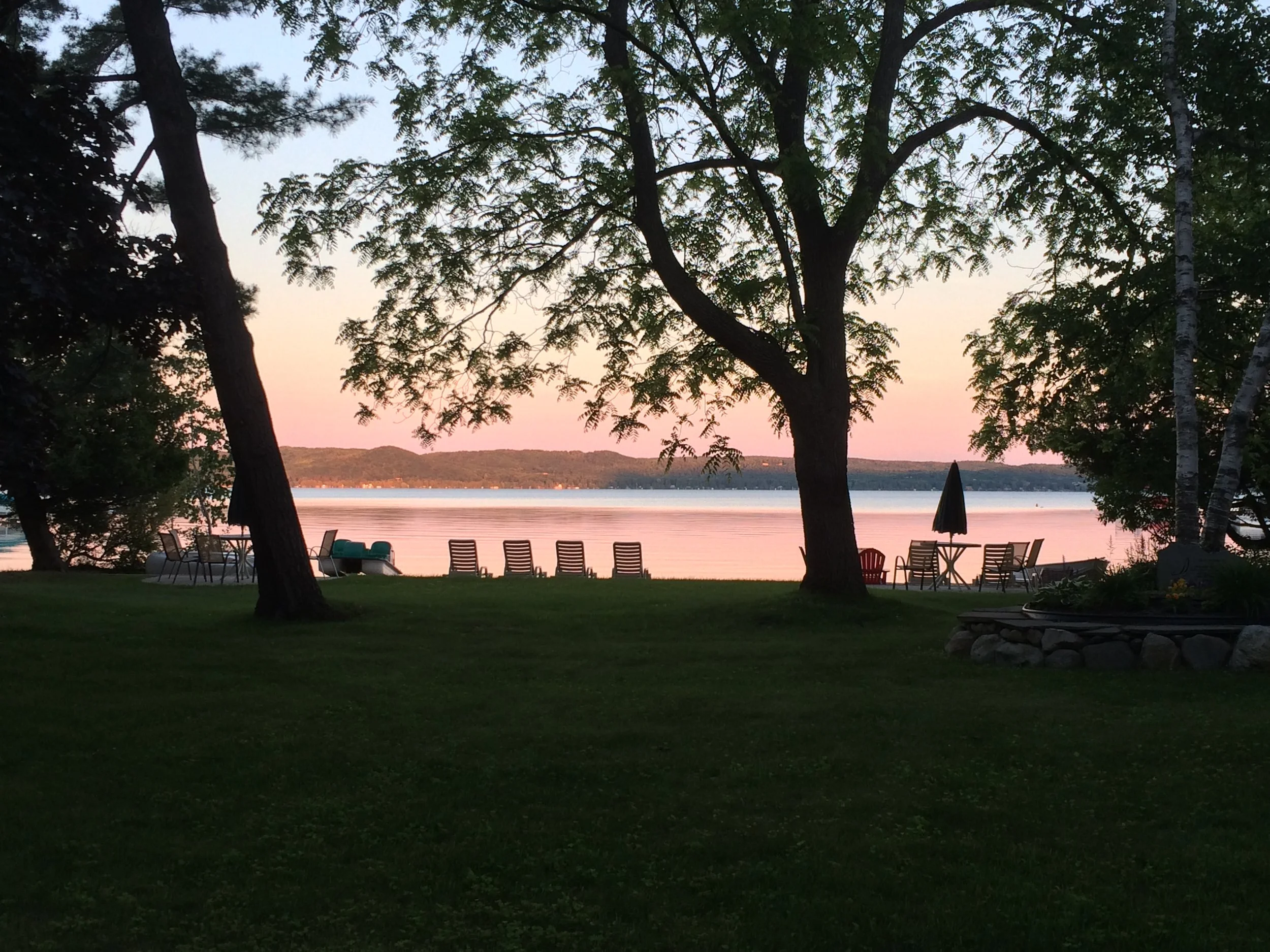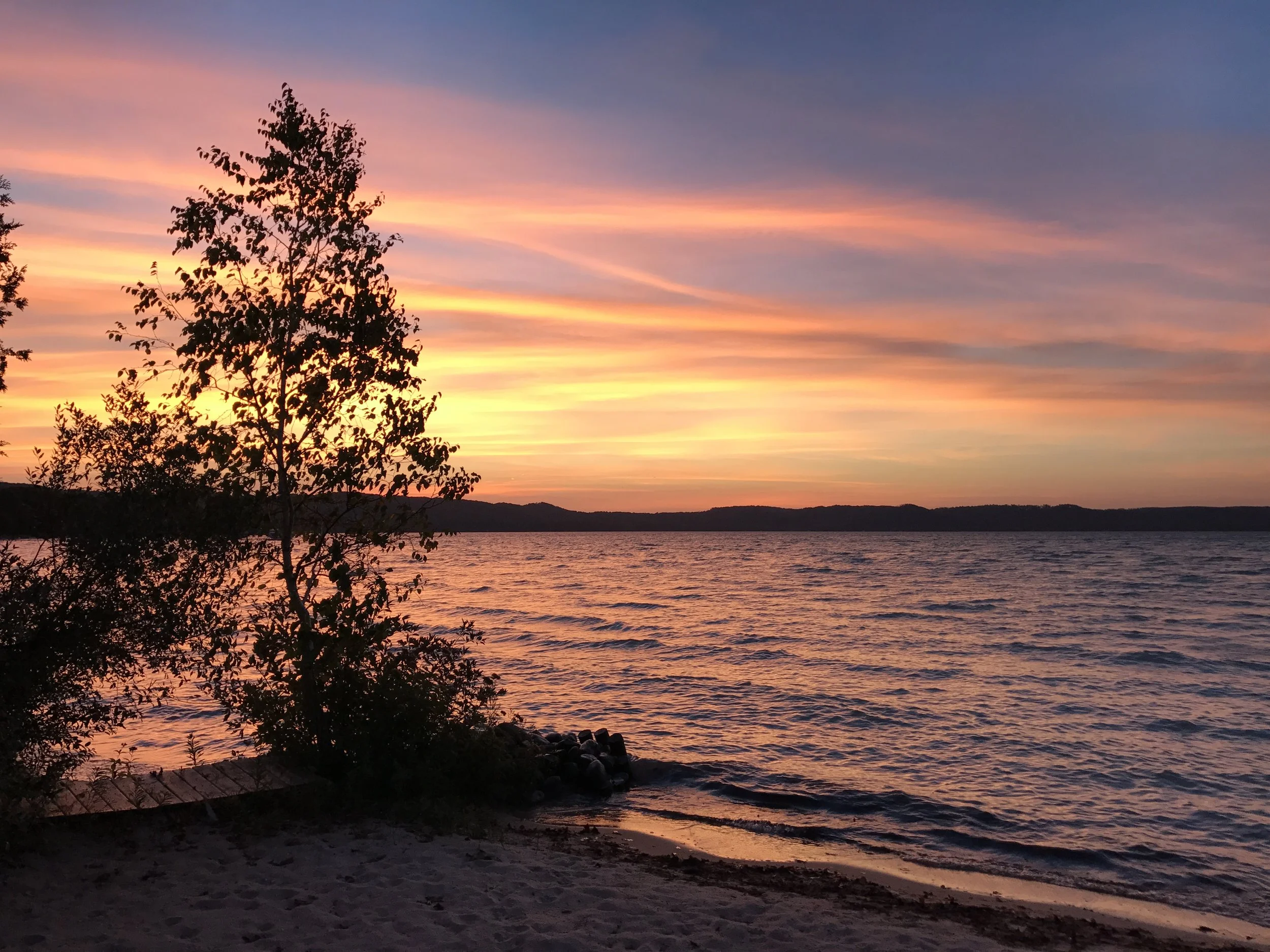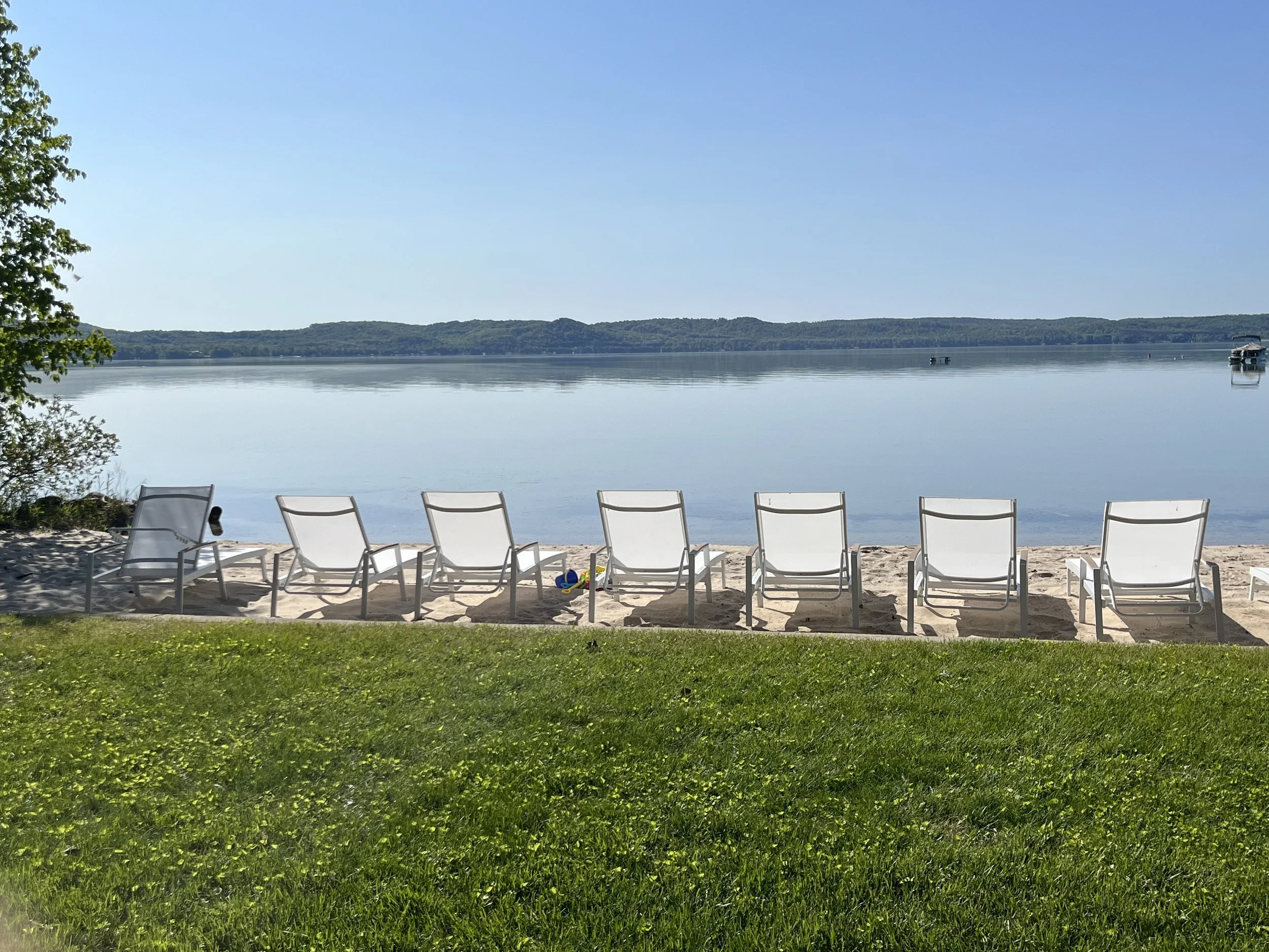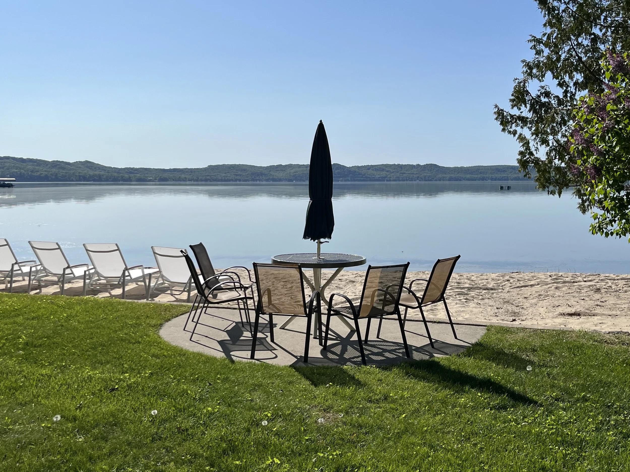 Surrounded with Michigan woods, right on the crystal clear waters of Big Glen Lake, yet located 1/2 mile from Glen Arbor and about 2 miles from Sleeping Bear National Park Dune climb this is the perfect spot to enjoy days at home and days out exploring the local area. Smooth, softly sloping sand leads to Glen Lake, just a short walk outside your door. Children love it, and adults can relax alongside them. Children can even wade all the way to the anchored raft. The very large beach is shared with three other villas but never crowded.